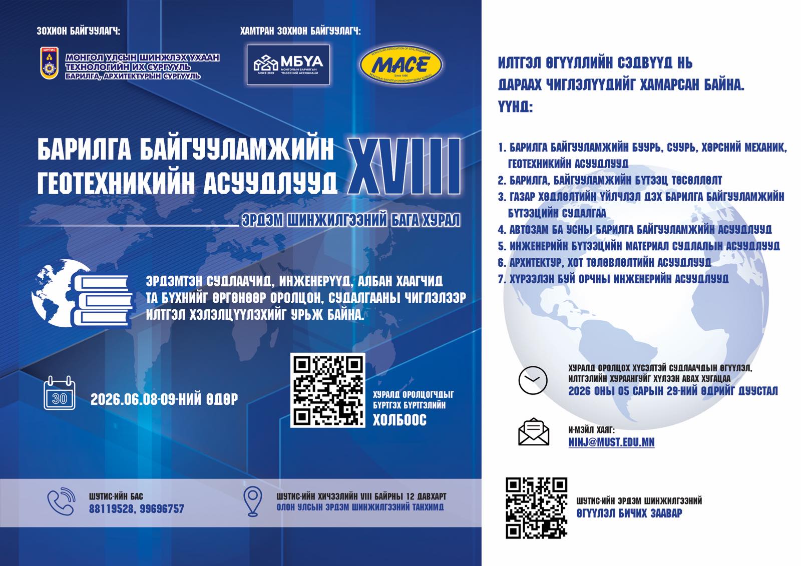 Барилга байгууламжийн XVIII геотекникийн асуудлууд эрдэм шинжилгээний бага хурал