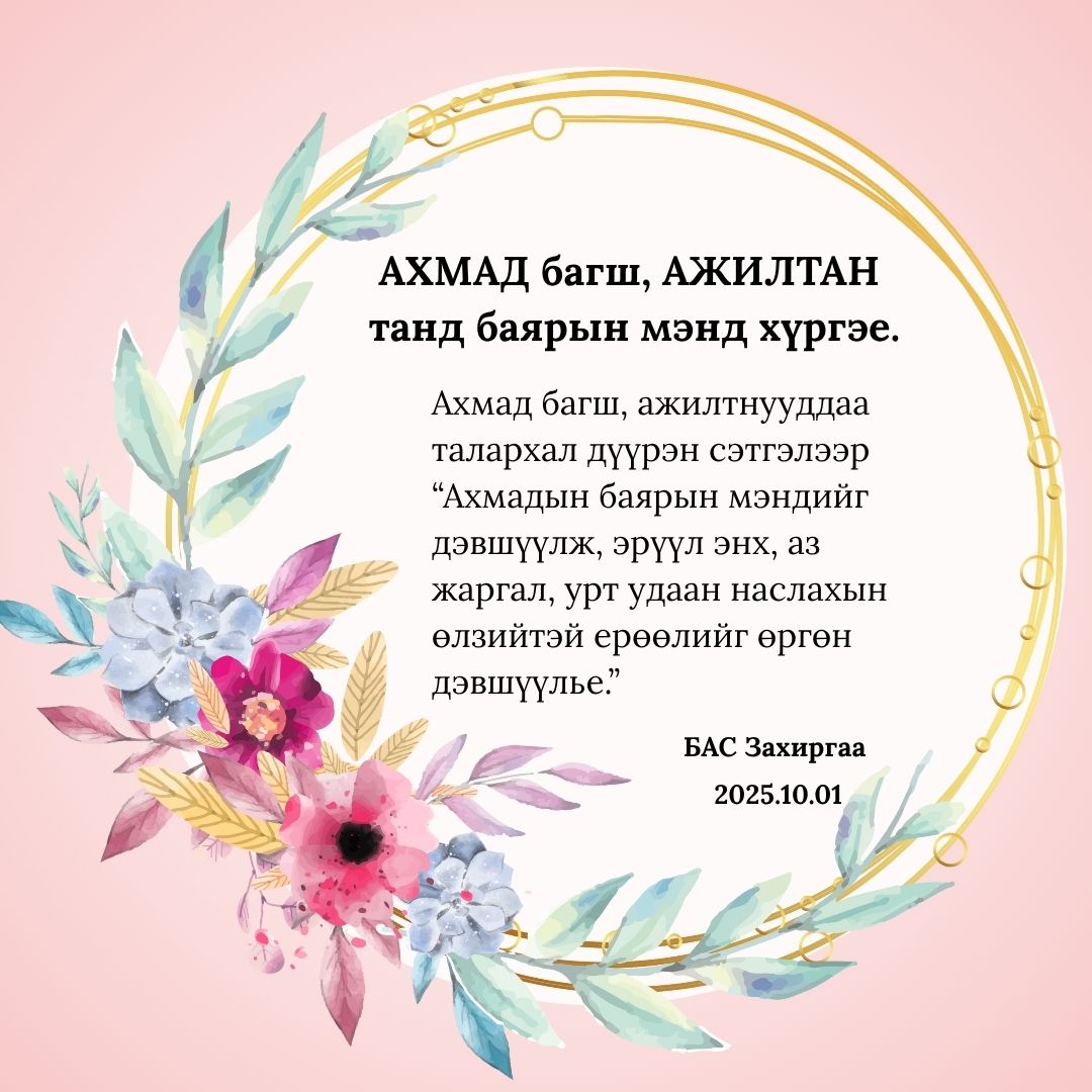 АХМАД багш, АЖИЛТАН танд баярын мэнд хүргэе.