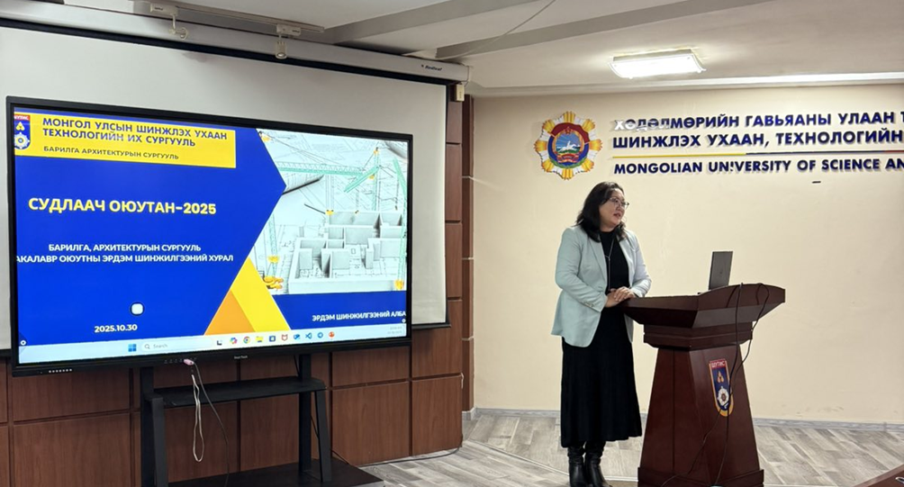 “Судлаач оюутан-2025” бакалавр оюутны эрдэм шинжилгээний хурлын шилдэг илтгэл, шилдэг контент шалгаруулалт 2025 оны 10 сарын 30-ний өдөр болов. Нийт 13 илтгэл хэлэлцүүлэгдсэнээс доктор (PhD), С.Пүрэвдорж удирдагчтай Ц.Мөнх-Үйлс, Б.Хулан нар " Буурийн жигд бус суултын нөлөөгөөр төмөр бетон каркасан барилгын зоорийн хананд үүсэх ан цав " сэдэвт илтгэлээр Тэргүүн байр; Магистр Д.Болормаа удирдагчтай Ш.Амгаланбаяр “Их дээд сургуулийн барилгын хүртээмжтэй орон зайг үнэлсэн нь (Улаанбаатар хотын их сургуулиудын жишээн дээр)” сэдэвт илтгэлээр Дэд байр; Магистр Б.Мандал удирдагчтай М. Б.Номинжаргал, Г.Дашмаа, Ц.Анужин нар " Анги танхимд дулаан эргүүлэн ашиглагчтай систем ашиглан дотор агаарын чанарт нөлөөлөх, түүний үр ашгийн судалгаа" сэдэвт илтгэлээр Гутгаар байр тус тус эзлэв. Мөн шилдэг контент төрөлд Магистр Ц.Батжаргал удирдагчтай Э.Энх-Амгалан Н.Анхбаяр Т.Гүндэгмаа нар “Явган замын төлөвлөлт ба зорчигчийн сэтгэлзүйн түвшинг үнэлэх судалгаа “ сэдэвт контентоор тусгай байр эзлэв. Судлаач оюутан-2025 бакалавр оюутны эрдэм шинжилгээний хуралд амжилттай оролцож байр эзэлсэн багуудад өргөмжлөл, мөнгөн шагнал, кредитийн урамшууллыг олгов.