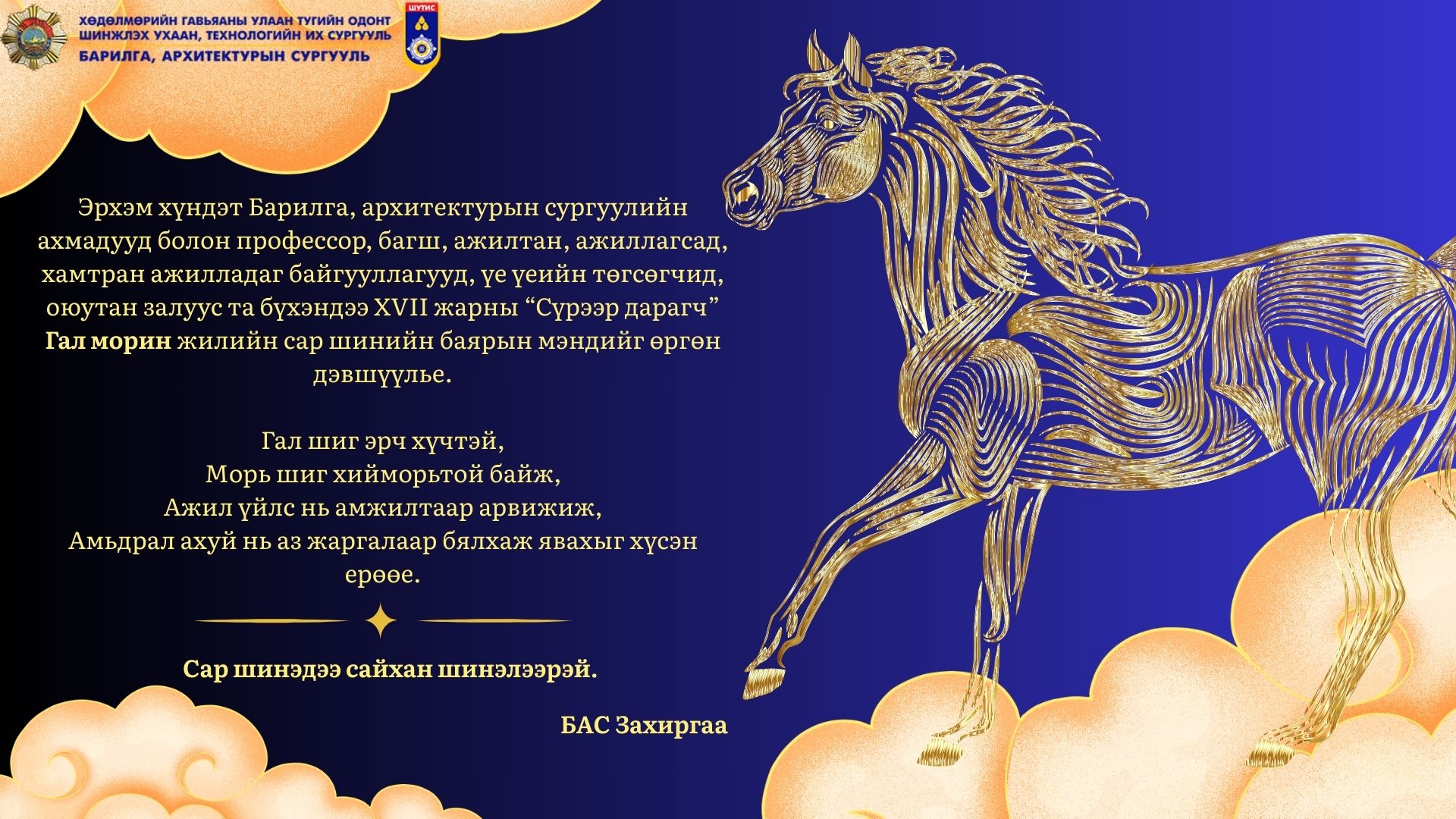 XVII жарны "Сүрээр дагагч" Гал морин жилдээ сар шинэдээ сайхан шинэлээрэй.