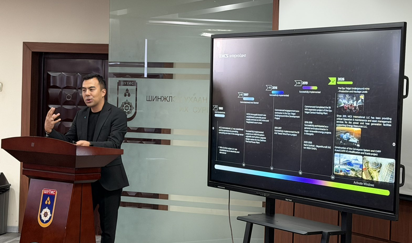 Энэ удаагийн эрдэм шинжилгээний хурлын ивээн тэтгэгч байгууллагаар “М СИ ЭС Интернэйшнл” ХХК оролцлоо. Тус компанийн зах зээл судалгааны менежер, БАС-ийн төгсөгч Ө.Цогтбаяр компанийн үйл ажиллагаа, хийж гүйцэтгэж буй онцлог төслүүдийг танилцуулав. М СИ ЭС Интернэйшнл ХХК нь 1993 онд байгуулагдсан, М СИ ЭС группийн ууган компани бөгөөд эрчим хүч, инженерчлэл, дэд бүтцийн салбарт тэргүүлэгч юм. Тус компани нь зураг төсөл, угсралт, зөвлөх үйлчилгээ, автоматжуулалт, цахилгаан хангамжийн чиглэлээр цогц шийдлийг санал болгон Монгол улсын бүтээн байгуулалтад томоохон хувь нэмэр оруулж байна.