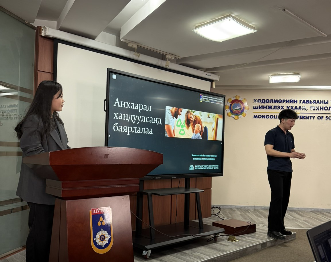 Гутгаар байрыг АТ-ийн дадлагажигч багш Б.Арвинзаяа удирдагчтай Ч.Буян-Аривжих, Б.Содбилэг, А.Энхсайхан, Г.Үжинмарал, А.Энхцэцэг нарын “Билгэхийн хөндийд олон нийтийн нээлттэй орон зайг бий болгох нөөц боломж болон хүртээмжийн судалгаа” сэдэвт илтгэл тус тус шалгарлаа.