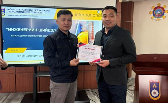 ШУТИС-ийн Барилга Архитектурын сургуулийн жил бүр уламжлал болгон зохион байгуулагддаг магистр, доктор оюутны Эрдэм шинжилгээний хурал 2026 оны 03 дугаар сарын 27-ны өдөр амжилттай зохион байгуулагдлаа. Уг хурал нь оюутан судлаачдын эрдэм шинжилгээ, судалгааны ажлыг дэмжин урамшуулах, судалгааны ажлын үр дүнг хэлэлцүүлэх, зөвлөгөө авах, эрдэм шинжилгээ, судалгааны ажлыг олон нийтэд танилцуулах, харилцан туршлага хуваалцах, хамтран ажиллах бололцоог бүрдүүлэхэд оршдог.