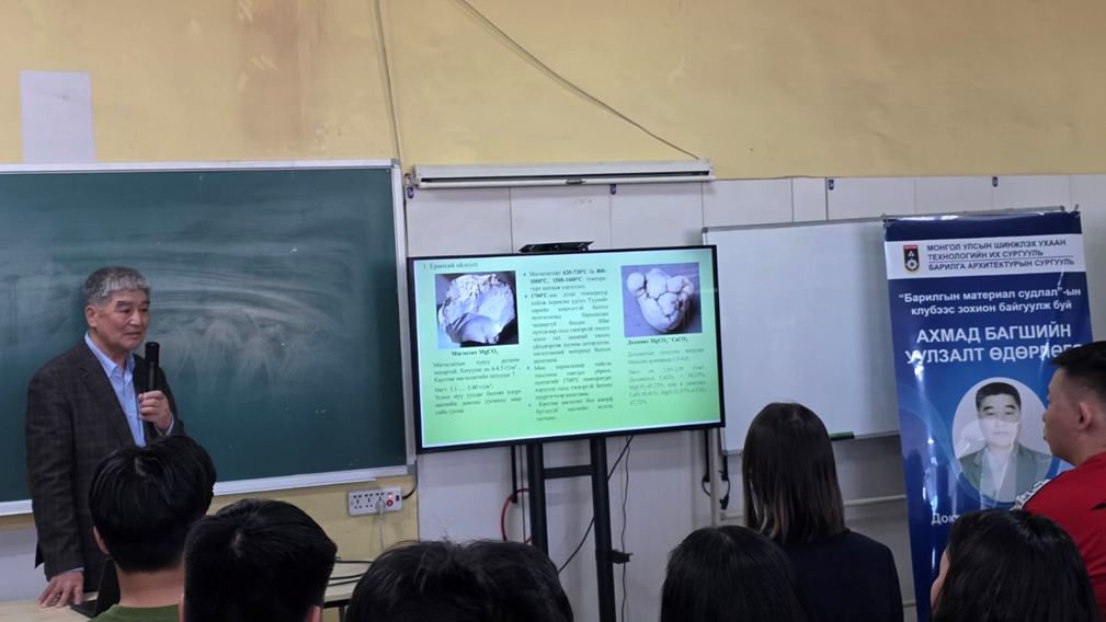 Лекцийн үеэр багш Ч.Дорлигсүрэн өөрийн ажлын туршлага, салбарын хөгжил, барилгын материалын үйлдвэрлэлийн чиг хандлага, мэргэжлийн онцлогийн талаар үнэтэй зөвлөгөө, сургамжийг оюутнуудтай хуваалцсан нь оролцогчдын сонирхлыг ихэд татсан үйл явдал боллоо.