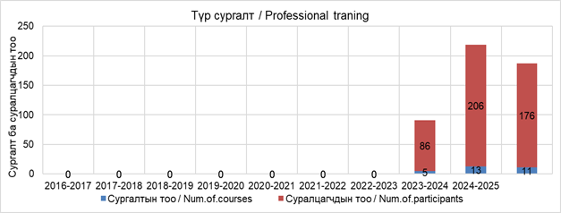 - БАС-ийн профессор, багш нарын эрдэм шинжилгээ, судалгааны чадвахыг сайжруулах сургалтууд